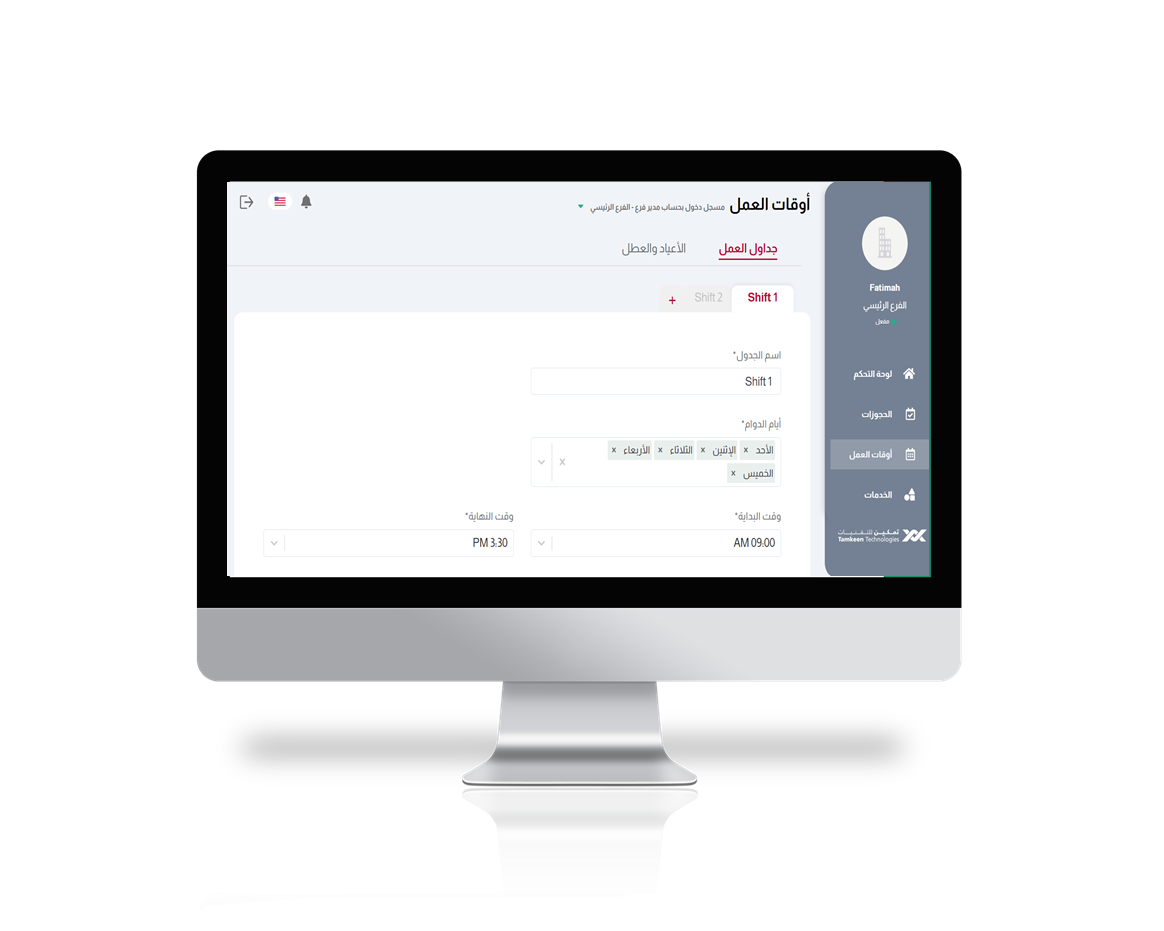 قم بتحديد أيام العمل ووقت بداية الفترة ونهايتها