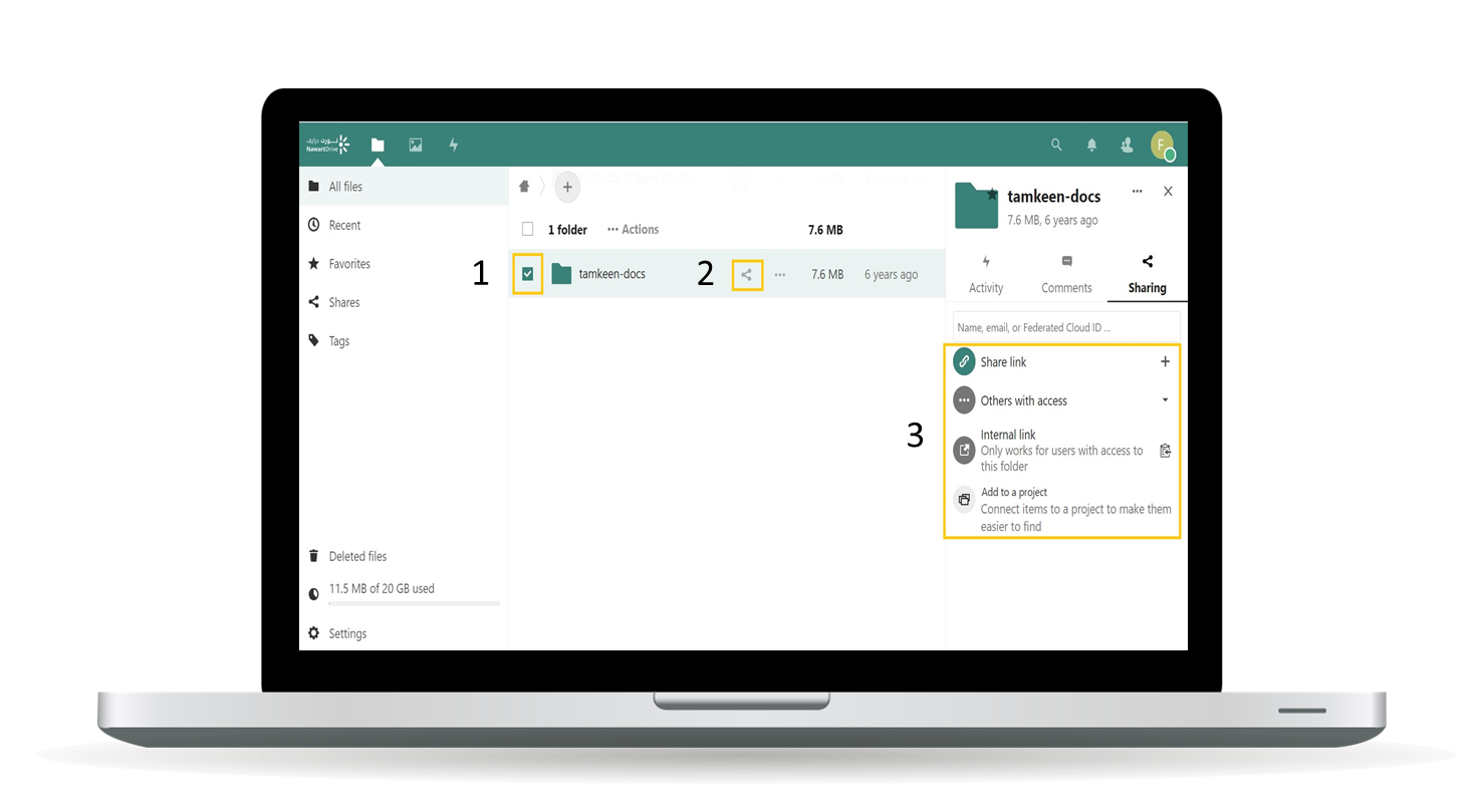 Choose the file you wish to share. Click the share icon. Enter the name of the employee you'd like to share the file with in the search box or their email.